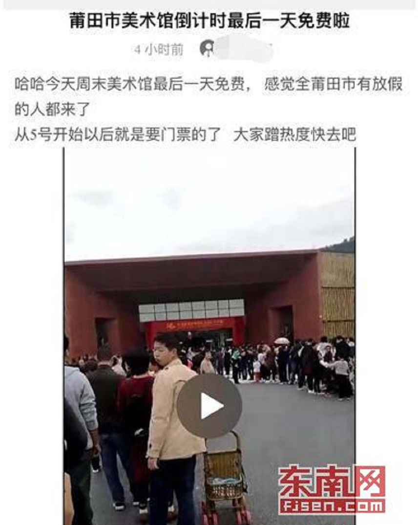 東南網(wǎng)莆田11月5日訊(本網(wǎng)記者 吳炳端)“(莆田市美術(shù)館)從5號(hào)開(kāi)始就是要門(mén)票的了,大家趕緊去。”昨日,莆田本地有自媒體稱,莆田市美術(shù)館11月5日之后將開(kāi)始收費(fèi)。東南網(wǎng)“網(wǎng)絡(luò)求真”欄目記者了解到,今日(5日),是市美術(shù)館最后一天向市民免費(fèi)開(kāi)放,之后館內(nèi)展品將歸還原藏地,美術(shù)館將閉館。 據(jù)了解,10月28日下午4時(shí),第五屆世界佛教論壇圖片藝術(shù)展揭幕儀式在莆田市美術(shù)館舉行。該展覽由中國(guó)佛教協(xié)會(huì)和中華宗教文化交流協(xié)會(huì)共同主辦,包含“一帶一路”佛教文化圖片展、佛教勝地行圖片成果展、漢傳佛教多語(yǔ)種翻譯成果展、佛教與藝術(shù)精品展等四個(gè)展項(xiàng),通過(guò)眾多精美的攝影圖片、工藝精品和佛教經(jīng)典翻譯成果等形式為海內(nèi)外與會(huì)嘉賓呈現(xiàn)佛教文化藝術(shù)的絢爛景觀和卓越成就。 10月30日,莆田市美術(shù)館正式向市民免費(fèi)開(kāi)放,免費(fèi)開(kāi)放時(shí)間截至11月5日。 “第五屆世界佛教論壇圖片藝術(shù)展是公益展出,并不收費(fèi)。但5日是美術(shù)館最后一天向市民免費(fèi)開(kāi)放,之后館內(nèi)展品將歸還原藏地,美術(shù)館將閉館。”佛教與藝術(shù)分論壇籌備工作組人員杜子雄說(shuō)。 杜子雄介紹,莆田市美術(shù)館后面還有將近兩百畝的原貝克啤酒廠舊廠房和設(shè)備,政府計(jì)劃按照修舊如舊的風(fēng)格進(jìn)行投資改造,打造一個(gè)高端文化創(chuàng)意產(chǎn)業(yè)園,策劃舉行大型頂級(jí)高端的藝術(shù)交流和展覽活動(dòng)。 |